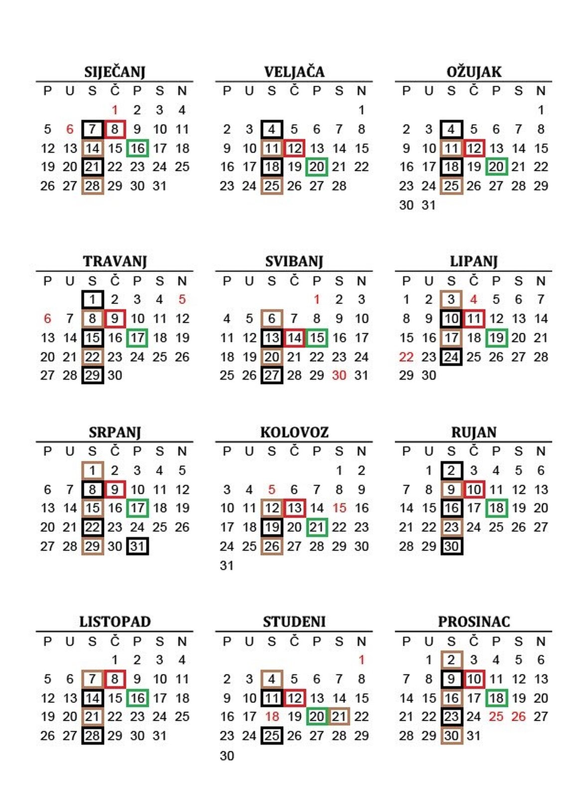 *NAPOMENA: Određeni datumi odvoza su pomaknuti van uobičajenih termina zbog državnih blagdana koji padaju na radne dane (vidi kalendar)