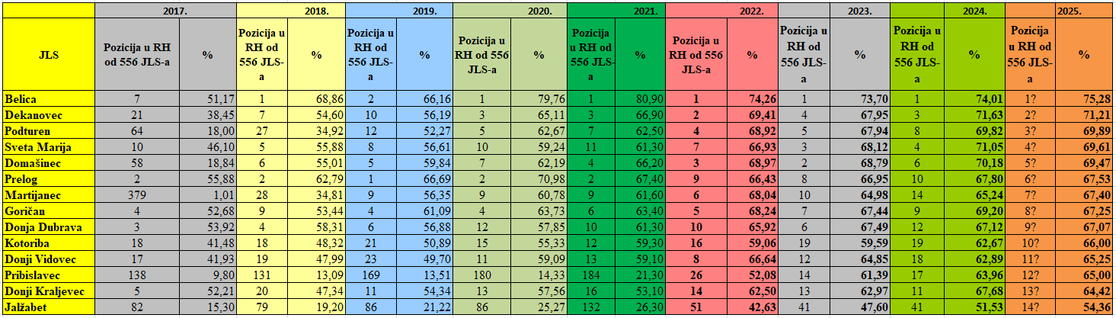 12.03.2026. U prošloj 2025. godini sakupljene i/ili obrađene su rekordne količine otpada od 17.930.666 kg, što je rast od 11,04% u odnosu na 2024. godinu. U sklopu javne usluge sakupljeno je 11.388.826 kg otpada što je povećanje za 3,42 % u odnosu na prethodno razdoblje. Sakupljeno je 3.748.860 kg miješanog komunalnog otpada što je povećanje za 3,32 % u odnosu na 2024. godinu. Količine MKO sakupljene od kućanstava povećale su se za 1,55%, dok se količina MKO od ne kućanstava povećala za 9,73 %. U 2025. godini udio odvojeno sakupljenog, obrađenog i oporabljenog korisnog otpada po evidenciji u skladu sa Ministarstvom zaštite okoliša i zelene tranzicije iznosi 67,08% što je povećanje za 0,03 % u odnosu na 2024. godinu. Postoci odvajanja otpada kreću se od 54,36% u Općini Jalžabet do 74,41% u Općini Belica koja je i dalje vodeća JLS sa najboljom stopom odvajanja otpada. Kada bi iz izračuna izdvojili MKO od ne kućanstva postotak odvojeno sakupljenog otpada penje se na 71,64%. Prosječno kućanstvo proizvede godišnje 227 kg miješanog komunalnog otpada, a prosječni stanovnik napravi godišnje samo 71 kg miješanog komunalnog otpada. Sa tim rezultatima očekujemo da će naše JLS i dalje ostati među najboljima u Republici Hrvatskoj.