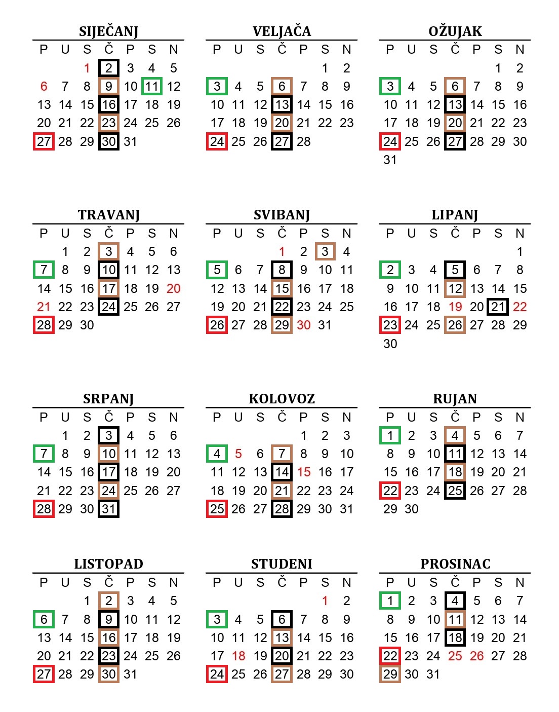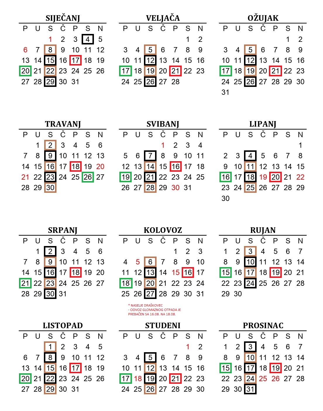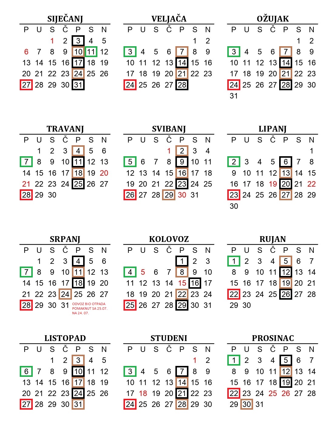 *NAPOMENA: Određeni datumi odvoza su pomaknuti van uobičajenih termina zbog državnih blagdana koji padaju na radne dane (vidi kalendar)