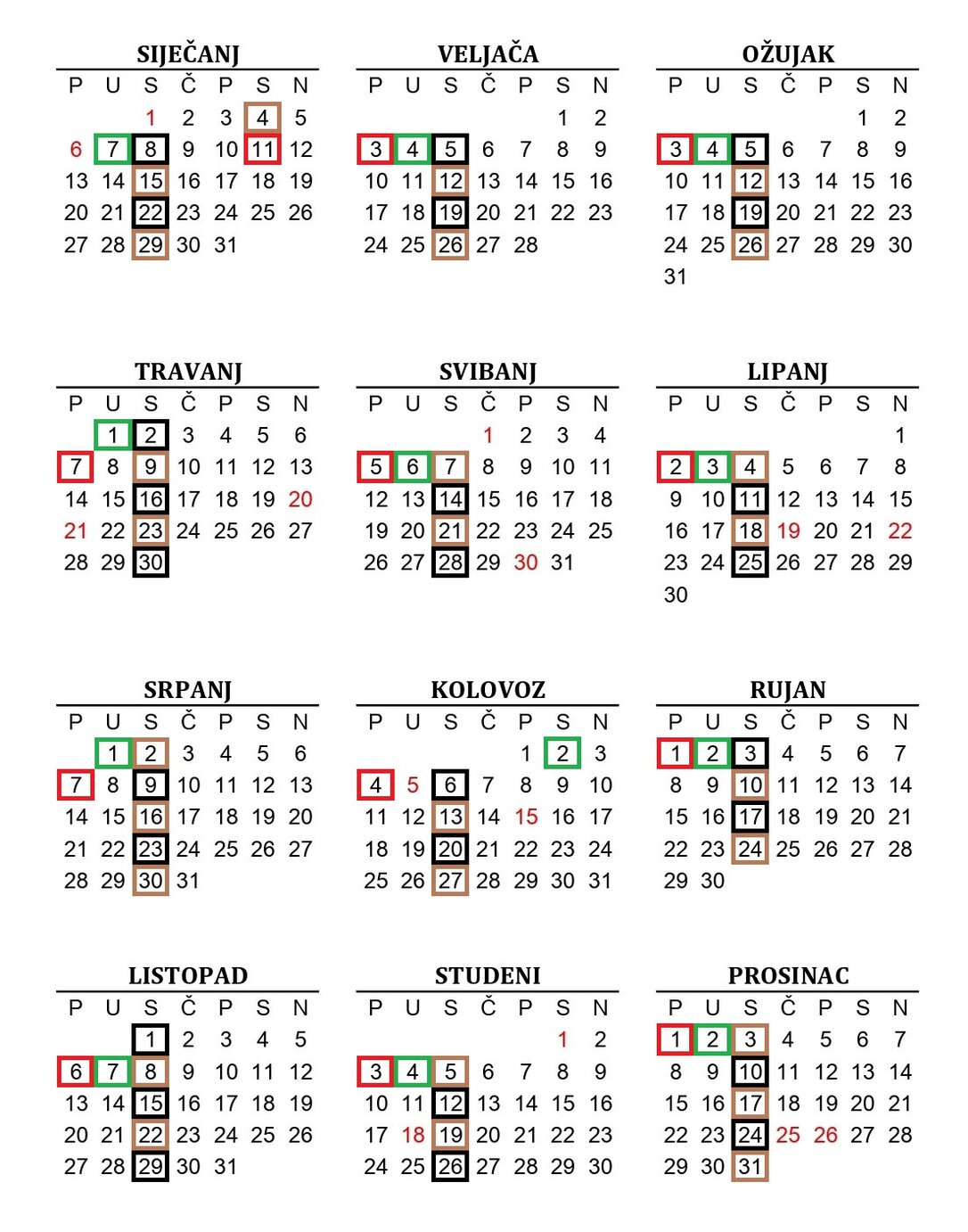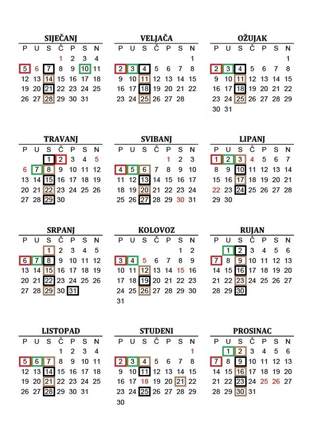 *NAPOMENA:Određeni datumi odvoza su pomaknuti van uobičajenih termina zbog državnih blagdana koji padaju na radne dane (vidi kalendar)