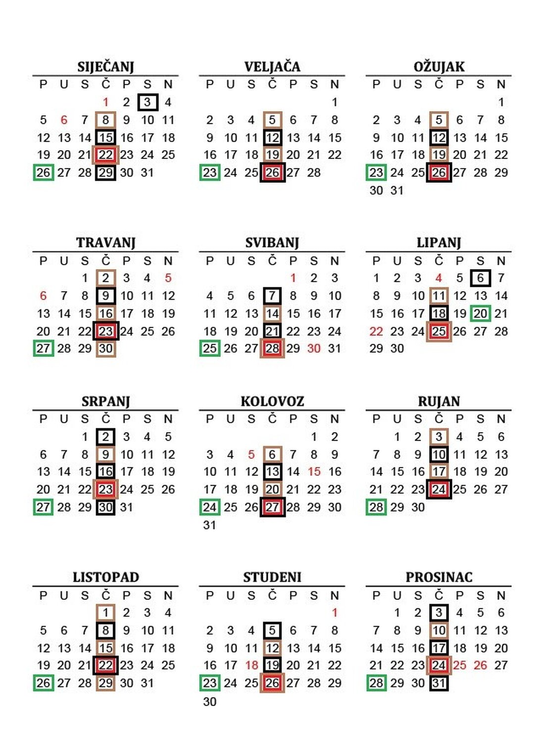 *NAPOMENA: Određeni datumi odvoza su pomaknuti van uobičajenih termina zbog državnih blagdana koji padaju na radne dane (vidi kalendar)